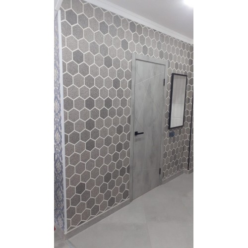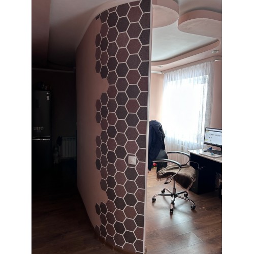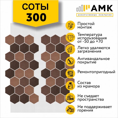 В состав материала входит мраморная крошка, акрил и сетка, на которую наклеены декоративные элементы.